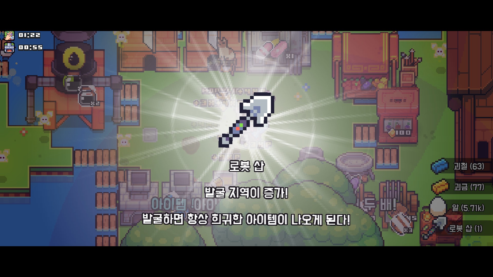 삽도 로봇 삽으로 업그레이드했습니다. 이제 발굴해낼 수 있는 지역이 증가하며 발굴하고 나면 항상 희귀한 아이템이 나오게 된다는데 특수한 땅이 아닌 그냥 땅 만파도 이제 플라스틱이나 가죽 같은 게 나옵니다.