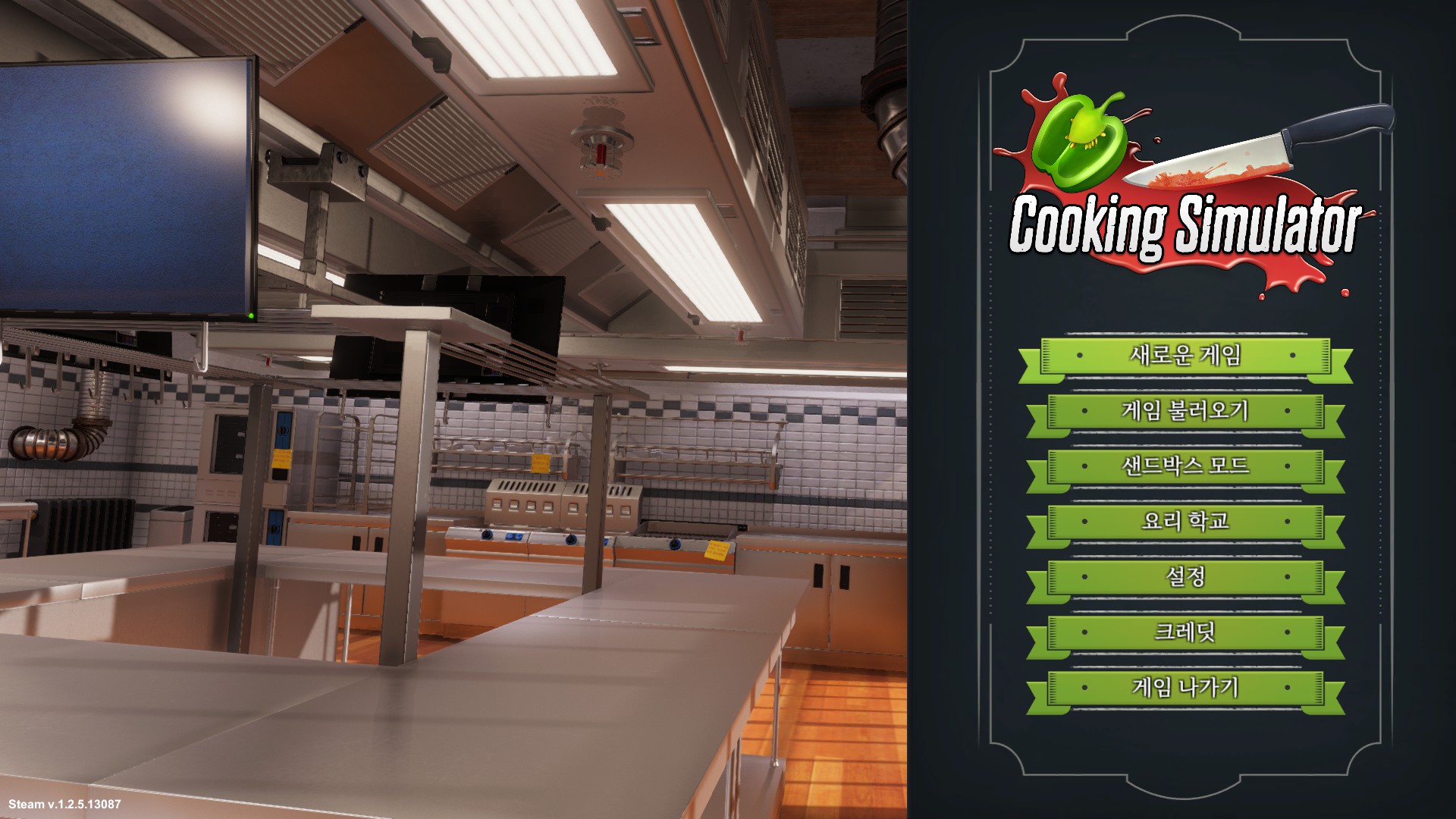저는 과거에 쿠킹마마 등 각종 요리게임들에 미쳐버렸던 경험이 있던지라 이런게임이 나오면 눈을 뒤집고 하게되는데 오랜만에 정말 만족스러웠던 요리게임이었던것같습니다. 일단 시작메뉴를 보면 정말 여러가지가 보이는데 여기서 다른메뉴들은 다 다른게임들과 다른점이 없지만 샌드박스 모드와 요리학교는 무엇인지 궁금하신분들이 있을것같습니다. 샌드박스모드는 사용자 설정모드라고 보시면 되는데 모든 레시피와 모든 재료들이 다 해금되어있는 모드입니다. 실험해보고싶은 요리들이 있거나 시간에 쫓기지않고 요리연습을 해보고싶은분들에게 추천드리는 모드라고할수있죠. 두번째로 요리학교는 들어가기전까지 시험같은걸봐서 등급을 매기는건가하고 설레며 들어갔는데 간단한 튜토리얼들이 모여있습니다. 하고 안하고는 은근히 차이가 날수있으니 게임을 처음접해보시는분들에게 한번쯤은 해보는걸 추천드립니다.