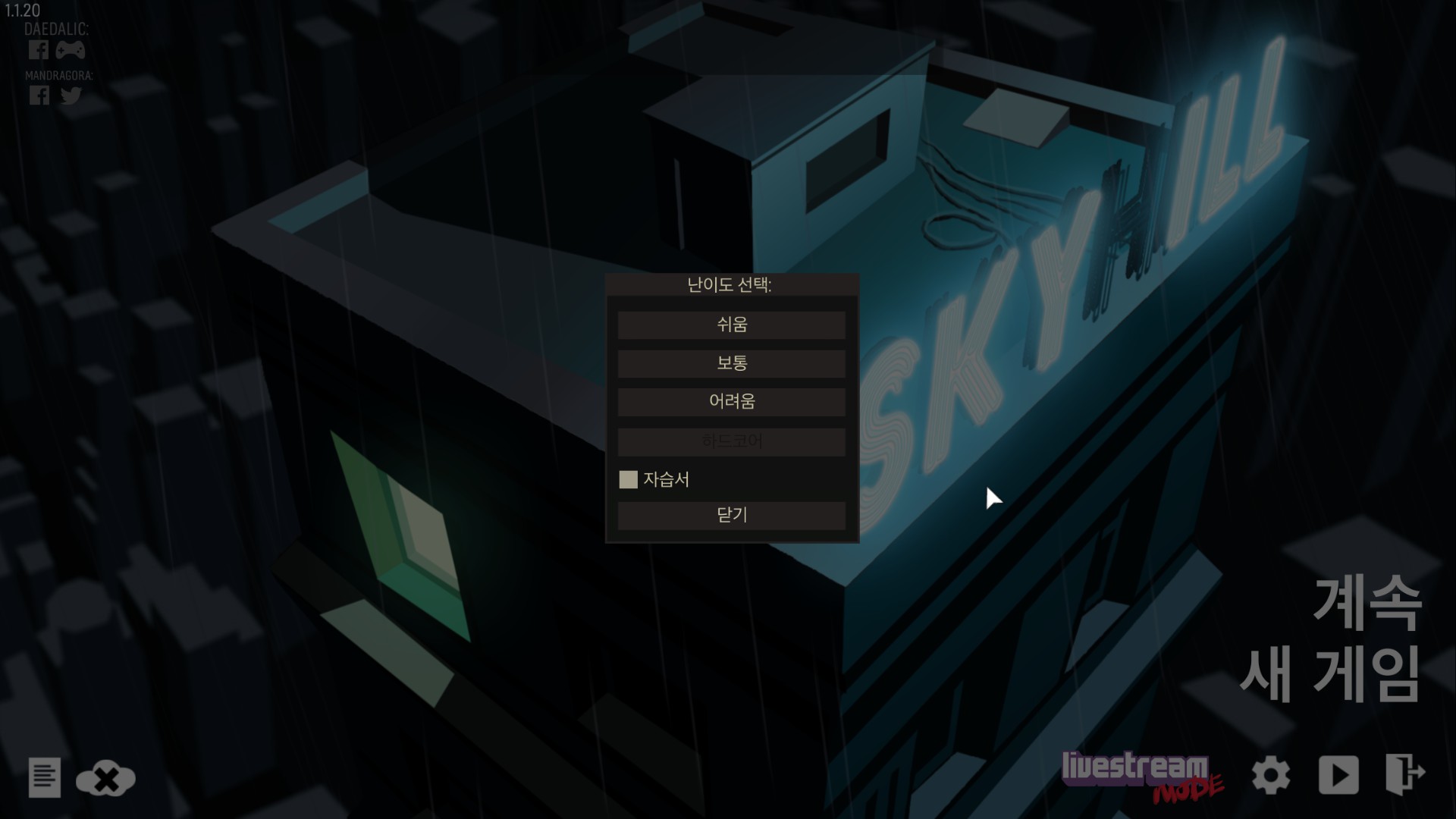 맨 처음에 시작하게 될 때에는 보통과 어려움만을 선택할 수 있는데 한판이라도 플레이하고 난 뒤로부터는