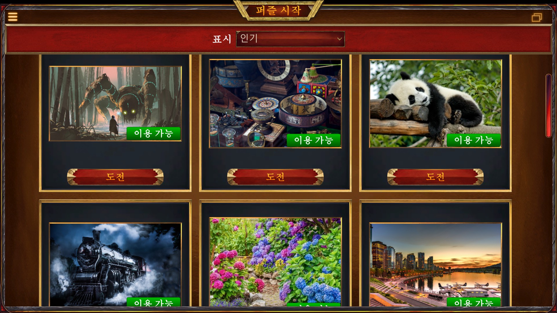 초록색 글씨로 이용 가능이라고 적혀 있는 퍼즐만 무료로 사용할 수 있으며