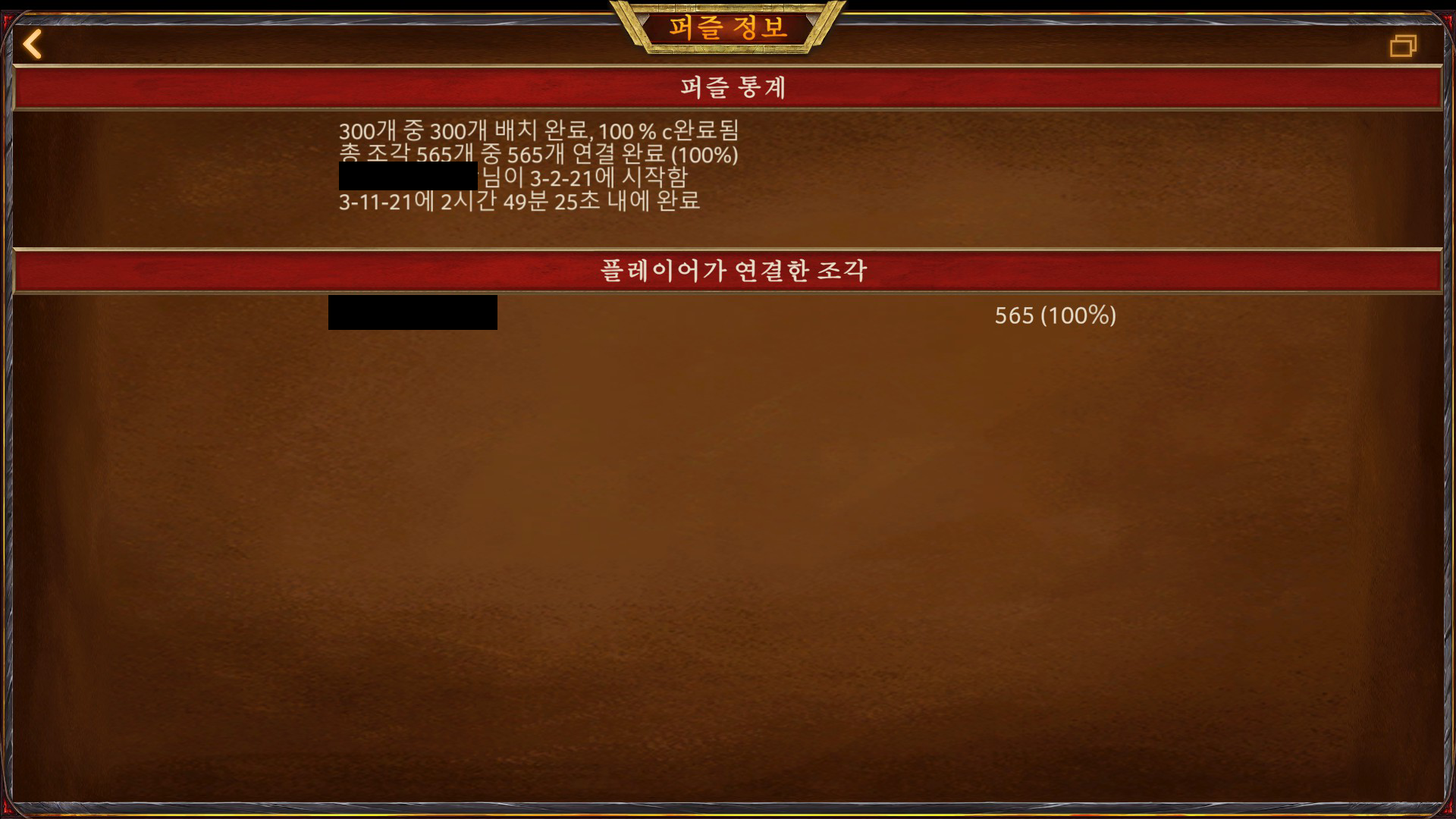 총 565조각을 3시간도 걸리지 않아서 완성했네요.