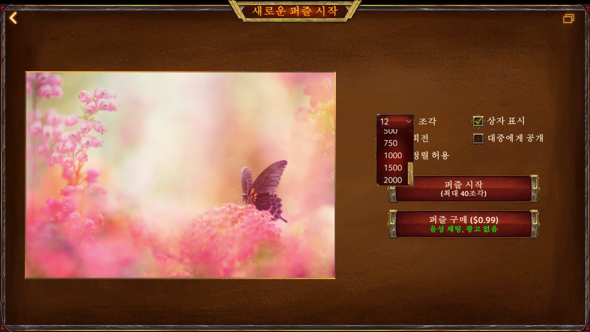 유료 퍼즐들은 최대 40피스로만 체험할 수 있습니다.