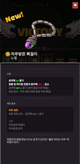 이 아이템은 공격력이 증가하는 대신 영웅 및 파티원 전원의 방어력이 감소하는 효과를 지니고 있기 때문에 주의하셔야 합니다.